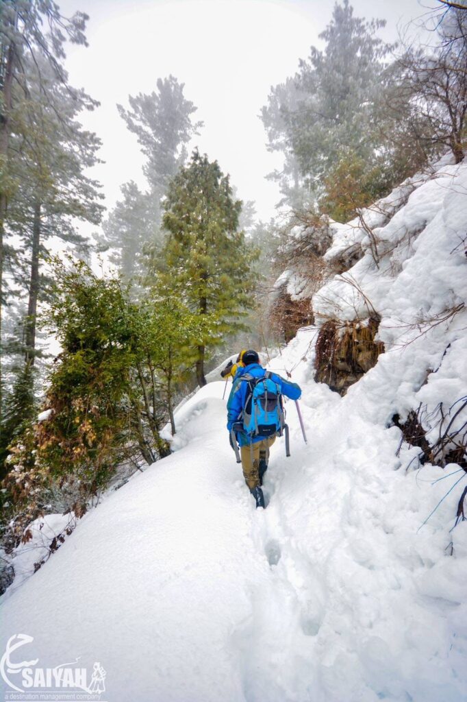 Yes, beginner-friendly winter treks include Mushkpuri Top, Nathiagali trails, Shogran meadows, and Miranjani (moderate). For remote treks like Arang Kel and Ganga Choti, hiring local guides through Saiyah is recommended for safety.