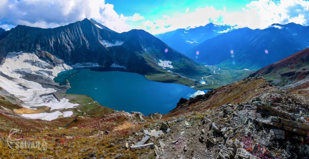 The name Ratti Gali comes from the reddish stones (“Ratti”) and due to the vibrant red alpine flowers and wildflowers that bloom around the lake and in the nearby meadows during summer found in the surrounding mountains. The lake remains frozen for most of the year and only becomes accessible during peak summer months, making it a seasonal paradise for trekkers.